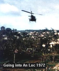 Approaching the city, we dropped down to the deck and flew up the corridor that was marked on our maps. There was no sign of enemy activity. As we approached An Loc, we were anticipating all hell breaking loose. The North Vietnamese were firmly entrenched in what was left of the city, and had to have known we were coming The slicks touched down and began loading the wounded. Not a shot was fired at any of them. The Cobras circled overhead. We orbited a few hundred yards south of the city.