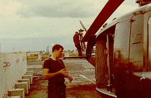 David Freeman in front of one of the 57th Med Detachment’s “White Elephant” Hueys in early 1972.