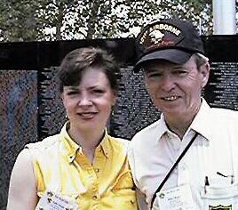 Julie Kink and Mike Maloy in front of the Traveling Wall at Fort Wolters.